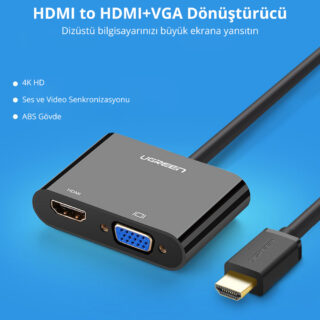 Ugreen HDMI To HDMI Optik ve 3.5mm Ses ve Video Ayırıcı Adaptör