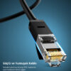 UGREEN Ethernet Kablosu saf bakır telden, daha düşük empedans ve yüksek performansla daha az sinyal kayıplı olacak şekilde üretilmiştir. Daha hızlı ve daha istikrarlı bir internet bağlantısı sağlamak için 8 adet altın kaplama pin ethernet kablosuna tam oturur.