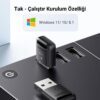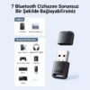 Ugreen Mini USB Dongle Bluetooth Adaptör, bilgisayarlarınıza veya diğer USB destekli cihazlara Bluetooth özelliği eklemenize olanak tanır, böylece kablosuz bağlantılar kurabilir ve çevresel cihazları bağlayabilirsiniz.
