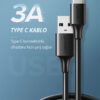 1 x Ugreen USB to USB C Hızlı Şarj Kablosu Siyah 25 CM